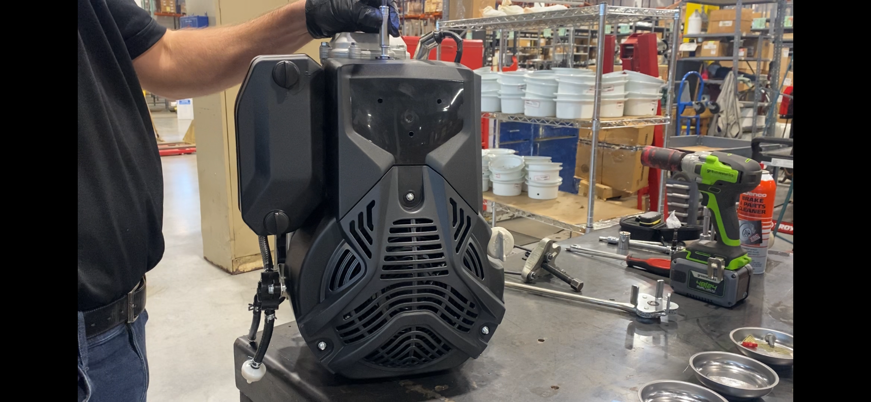 Remove Blower Housing (3x 10mm nuts, loosen 10mm shoulder bolt).